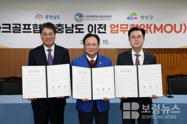 협약에 따르면, 도와 청양군, 대한파크골프협회는 협회 사무실 및 교육센터 이전, 파크골프 활성화를 통한 ‘건강한 고령화’ 등을 위해 함께 노력한다.