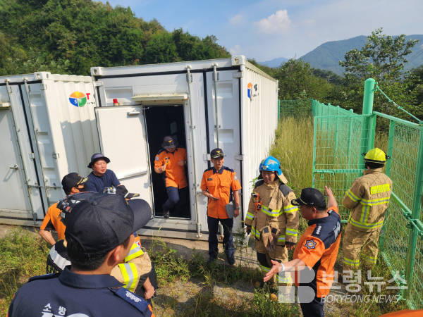 보령소방서(서장 고광종)는 지난 1일 보령시 성주면 개화리 소재 ㈜탑선태양광 등 4개소 에너지저장장치(ESS) 시설에서 현장 지도방문과 긴급 현지적응훈련을 실시했다고 밝혔다.