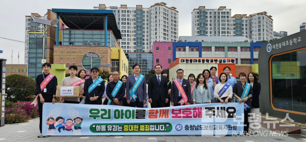 보령교육지원청(교육장 한태희)은 학생들의 안전한 통학 환경을 조성하고 범죄로부터 아동을 보호하기 위해 10월 2일 대천동대초등학교에서 ‘아동안전 및 유괴예방 캠페인’을 실시하였다.