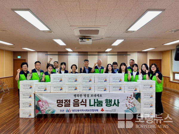 보령시 대천2동지역사회보장협의체(민간위원장 임창빈)는 지난 2일 한가위를 맞아 추석 명절 음식 전달식을 진행했다. 이 전달식에는 임창빈 민간위원장, 고준웅 대천2동장, 협의체 위원 등이 함께 하였으며, 전달식이 끝난 후 협의체 위원들이 취약가구를 직접 방문하여 음식 꾸러미를 전달했다.