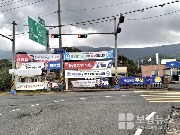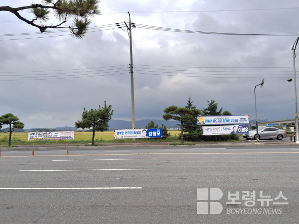 특히 관광객이 많이 찾는 대천 해수욕장 방면 ‘대해로’ 좌우 도로변에도“고향방문을 환영합니다”를 비롯한 불법 현수막이 걸려 있는 모습을 흔치 않게 볼 수 있다.