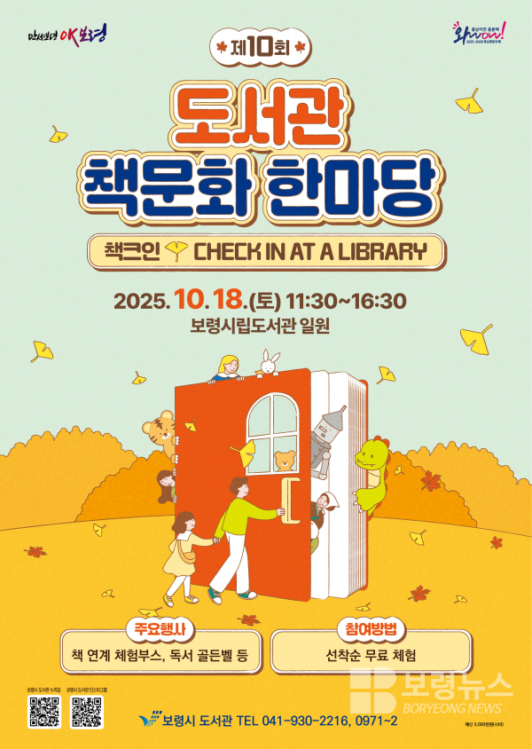 보령시는 오는 18일 오전 11시 30분부터 오후 4시 30분까지 보령시립도서관 일원에서 ‘제10회 도서관 책문화 한마당’을 개최한다.