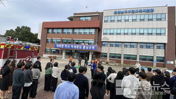 보령교육지원청(교육장 한태희)은 10월 21일 오전 10시 전 직원을 대상으로 보령소방서와 합동소방훈련 및 교육을 실시했다.이번 훈련은 청 내 화재상황을 가정한 모의 시뮬레이션 훈련으로 화재 상황 시 직원 및 민원인들의 신속한 대피를 통한 안전 확보와 피해 상황 최소화를 목적으로 진행됐다. 직원들은 합동소방훈련 동안 지난 6월 진행된 자체소방훈련을 통해 숙지한 각자의 업무를 바탕으로 보령소방서 및 명천119안전센터와의 신속대응체계와 현장대응능력을 강화했다.