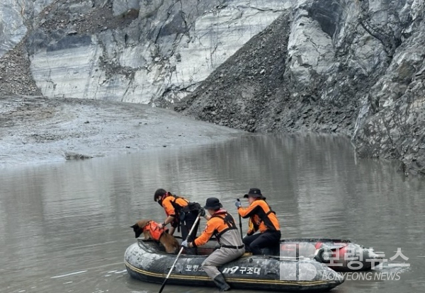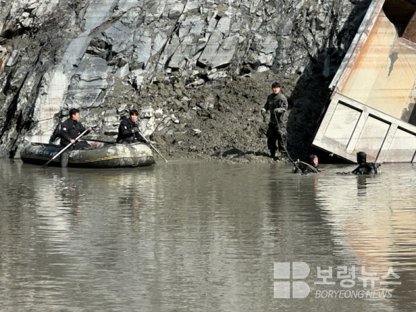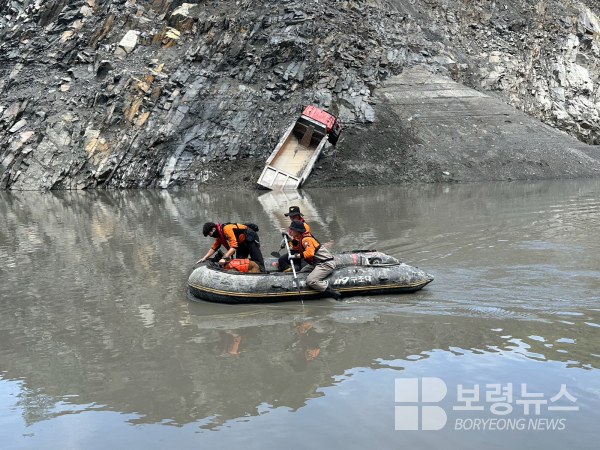 보령소방서(서장 고광종)는 성주면 한 채석장에서 발생한 덤프트럭 추락 사고와 관련해, 23일 오후 중앙119구조본부의 수난탐지견이 현장에 투입되어 본격적인 수색을 진행하고 있다고 밝혔다.