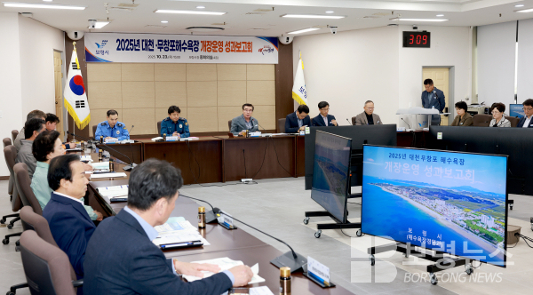 보령시는 지난 23일 시청 중회의실에서 김동일 보령시장을 비롯해 유관기관 및 단체 관계자 30여 명이 참석한 가운데 ‘2025년 해수욕장 개장운영 성과보고회’를 개최했다.