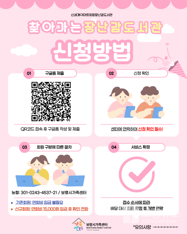 서비스 이용을 위해서는 QR코드를 통해 구글 폼에서 장난감도서관 회원가입을 해야 하며, 신규 가입 시 연회비 15,000원을 납부해야 한다. 기존 회원의 경우 추가 비용 없이 이용할 수 있다.