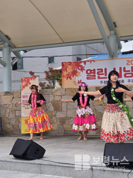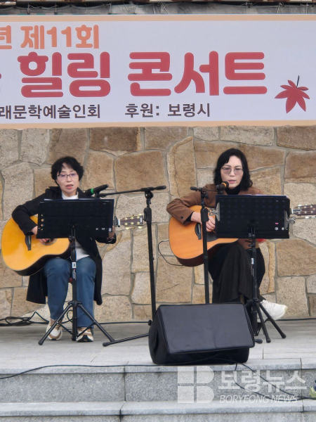 가을의 정취 속에서 시와 음악이 어우러지는 감성 무대는 ‘배짱이 통기타’산골소년의사랑이야기외,한국음악교육협회보령지부(지부장박연숙)회원들의 “화와이훌라춤,보령흙피오카리나앙상블의 ’숨어우는바람소리 외1곡’의 공연이 더해져서 시와 음악과 춤이 어우러진 문화예술의 한마당을 즐길 수 있었다.