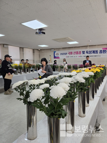 충남도 농업기술원은 27일 기술원 내 화훼연구소 국화연구 온실에서 ‘충남산 국화 신품종 육성 계통 품평회’를 개최했다.