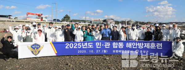 보령해양경찰서(서장 이근영)는 지난 27일 충남 홍성군 궁리항에서 홍성군과 관계기관 및 단・업체 90여 명이 함께하여 해안방제훈련을 진행했다고 밝혔다.