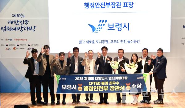 충남 보령시가 경찰청과 중앙일보가 공동 주최한 ‘제10회 대한민국 범죄예방대상’에서 셉테드(CPTED, 범죄예방환경설계) 분야 최우수 행정안전부 장관상을 수상했다.