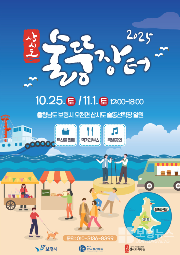 보령시는 11월 1일(토) 오후 12시부터 6시까지 삽시도 술뚱선착장 일원에서 ‘삽시도 술뚱장터’ 행사를 개최한다고 밝혔다.