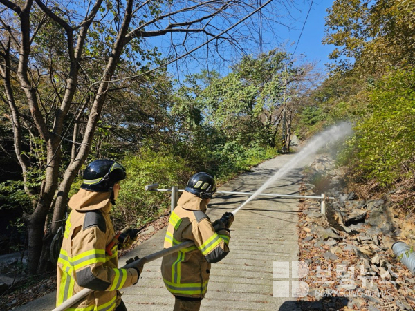 훈련에는 소방대원 20여 명과 차량 3대(성능개선 펌프차 1대, 탱크차 2대)가 투입됐으며, 고압소방호스(65mm) 5본과 소방호스 12본 등 방수에 필요한 장비를 활용해 진행됐다.