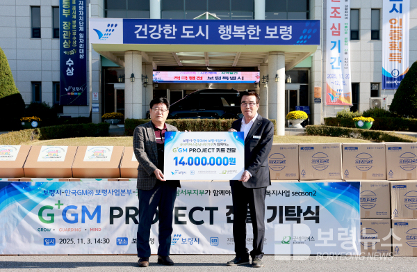 보령시는 지난 3일 시청광장에서 한국지엠(주) 보령사업본부와 굿네이버스 충남서부지부와 함께한 ‘G+GM 프로젝트’ 지역사회 협력사업 물품 전달식을 개최했다.