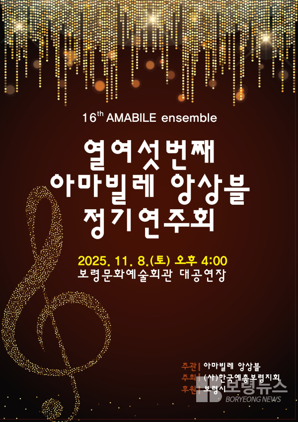 보령시는 아마빌레 앙상블이 오는 11월 8일(토) 보령문화예술회관 대공연장에서 제16회 정기연주회를 개최한다고 밝혔다.