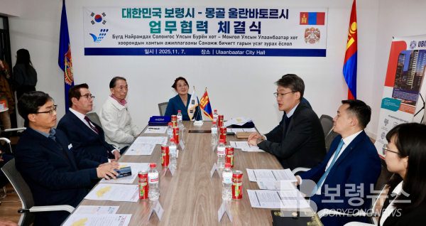 이번 협약은 보령시 대표단이 울란바토르를 공식 방문해 양 도시 간 지속가능한 발전과 공동 번영을 위한 협력 기반을 마련하기 위해 추진됐으며, 이를 계기로 행정·문화·경제 등 다양한 분야에서 상호 교류가 본격화될 전망이다.