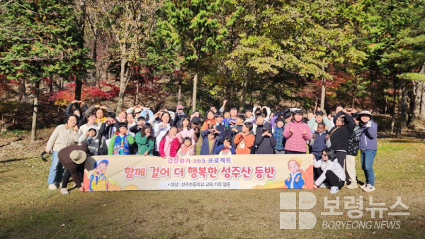 성주초등학교(교장 권미현)는 11월 11일 성주산 자연휴양림에서 학생, 학부모, 교직원 등 교육공동체가 참석한 가운데,‘2025 건강걷기 365 프로젝트 성주산 걷쥬’행사를 실시했다.
