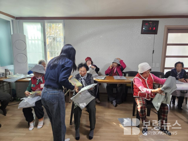 또한 어르신들의 야간 보행 안전 확보를 위해 행정안전부에서 지원한 반광조끼와 반광모자를 참석자에게 배부했다.