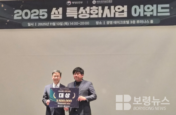 보령시는 오천면 원산2리 마을이 행정안전부와 한국섬진흥원이 주관한 ‘2025년 섬 지역 특성화사업 우수사례 발표회’에서 1단계 부문 대상을 수상했다고 밝혔다. 시상식은 지난 13일 광명 테이크 호텔 3층 루미나스 홀에서 열렸다.