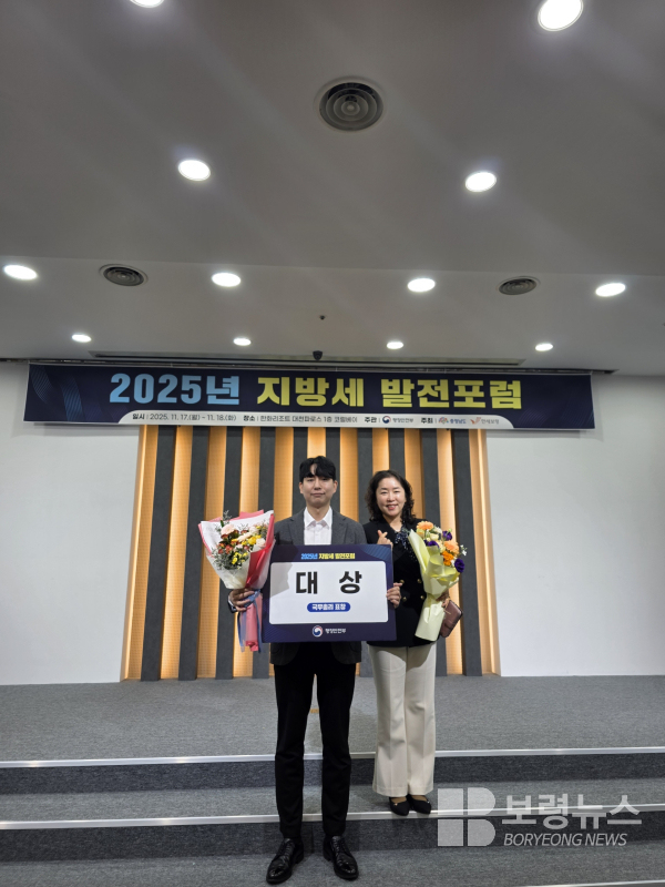 보령시는 행정안전부 주관으로 지난 17일부터 18일까지 1박 2일간 충남 보령시 한화리조트 대천파로스에서 개최한 ‘2025년 지방세 발전포럼’ 연구과제 발표대회에서 충청남도 대표로 참가하여 대회 최고 영예인 ‘대상’을 수상했다고 밝혔다.