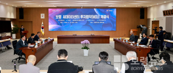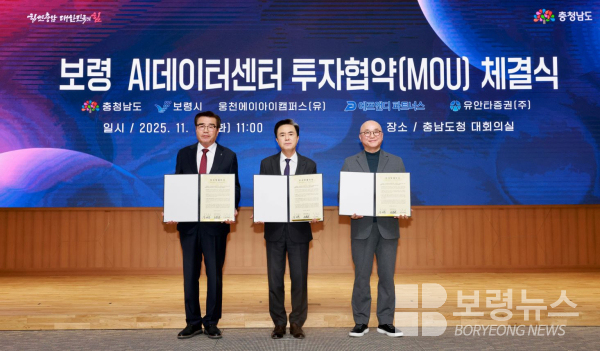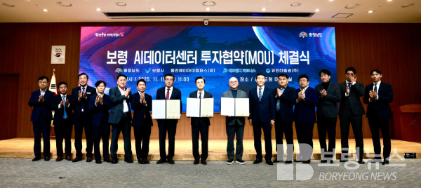 보령시는 18일 충남도청 대회의실에서 김태흠 충남도지사, 김동일 보령시장, 김용호 웅천에이아이캠퍼스 대표가 참석한 가운데 AI 데이터센터 조성을 위한 투자협약(MOU)을 체결했다고 밝혔다.