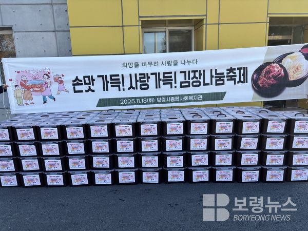 한편 보령시종합사회복지관은 ‘김치은행’을 운영해 김장철 동안 각 기관·단체 및 시민들이 기부한 김장을 냉장 저장한 뒤, 연중 김치가 필요한 저소득층에게 수시로 전달할 예정이다.