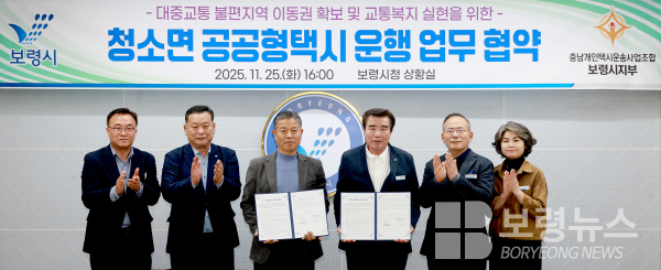 보령시는 지난 25일 시청 상황실에서 김동일 보령시장과 송기정 충남개인택시운송사업조합 보령시지부장 등이 참석한 가운데 업무협약식을 개최했다.