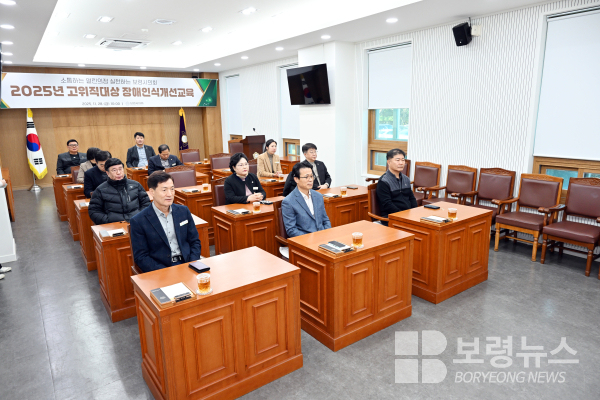 보령시의회(의장 최은순)는 28일 의회 1층 회의실에서 의원과 사무국장, 수석전문위원 등 고위직 15명을 대상으로 ‘2025년 고위직 장애인식개선교육’을 실시했다.