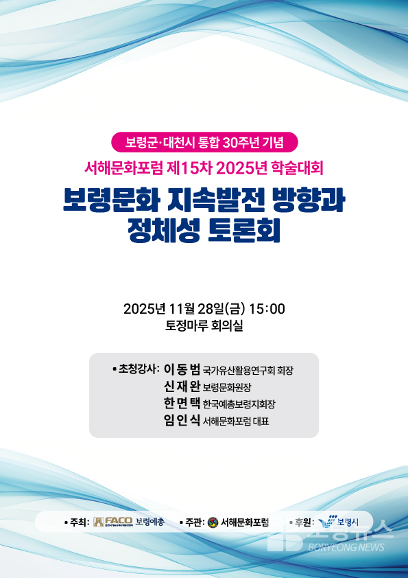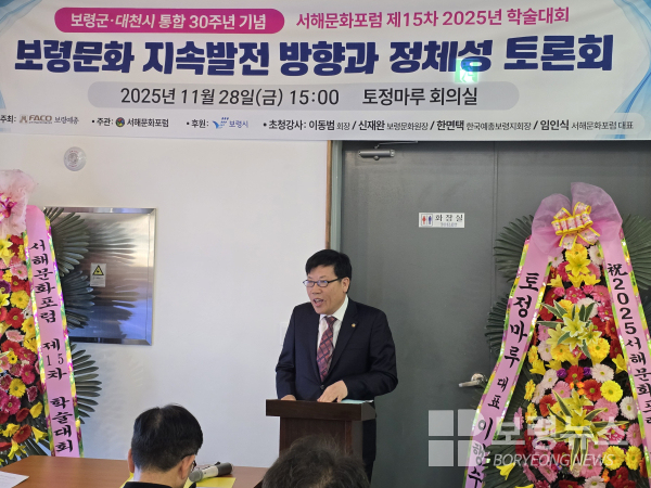 보령군·대천시 통합 30주년을 맞아 28일 토정마루 회의실에서 지역문화의 새로운 좌표를 제시하는 ‘2025 서해문화포럼 제15차 학술대회’가 열렸다.