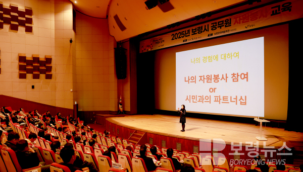 보령시는 지난 12월 1일 문화예술회관 대공연장에서 전 직원을 대상으로 ‘공직자 자원봉사 교육’을 실시했다. 이번 교육은 공직자의 자원봉사 역량을 강화하고 시민과의 협력 기반을 다지기 위해 마련됐다.