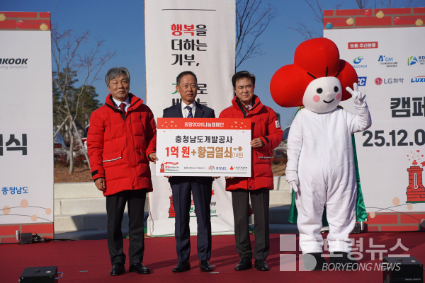 충남개발공사(사장 김병근)가 1일 사회복지공동모금회가 주관하는 ‘희망2026 나눔캠페인’ 출범식에 참석하여 1억 원과 황금열쇠를 기탁해 통큰나눔에 앞장섰다.