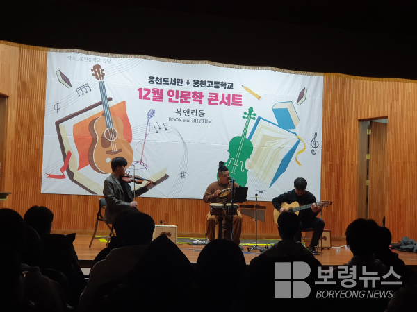 보령교육지원청웅천도서관(관장 류미정)은 12월 3일 웅천고등학교 3학년 학생 60명을 대상으로 인문학 콘서트를 개최했다. 이번 행사는 강원국 작가와 재즈 밴드 ‘핫클럽디코리아’를 초청해 독서·문화예술이 결합된 특별한 무대로 꾸며졌다.