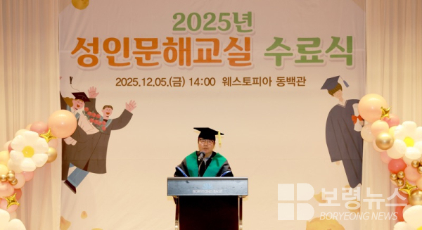 보령시는 지난 5일 보령베이스 동백홀에서 어르신 및 관계자 등 약 300여 명이 참석한 가운데 성인문해교실 수료식을 개최했다고 밝혔다.