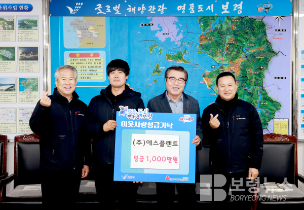 주식회사 에스플랜트(대표 김민기)가 11일 지역사회 나눔 문화 확산에 동참하며 성금 1,000만 원을 보령시에 기탁했다. 이는 지난 2021년부터 5년째 이어온 꾸준한 나눔 실천이다.