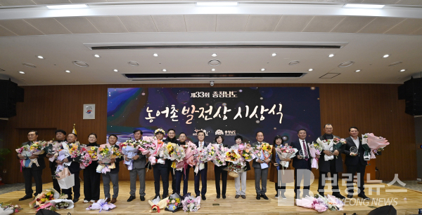 충남도는 15일 도청 대회의실에서 제33회 충청남도 농어촌발전상 시상식을 갖고 △작목 △시책 △지원기관 △관련 단체 △특별상 등 5개 부문에 15명을 선정하여 표창하였다.