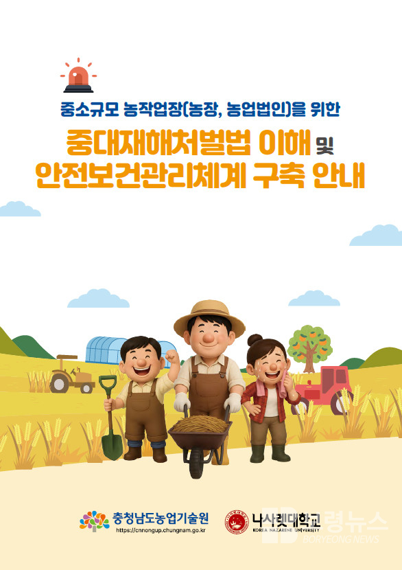 충남도 농업기술원은 농업 분야 특성을 반영한 ‘중대재해처벌법 이해 및 안전보건관리체계 구축 안내서’를 제작해 농업현장에 보급했다고 17일 밝혔다.