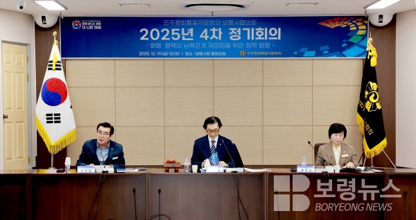 민주평화통일자문회의 보령시협의회(협의회장 전윤수, 이하 ‘보령시협의회’)는 19일 중회의실에서 김동일 보령시장, 자문위원 등 50여 명이 참석한 가운데 ‘화해·협력의 남북관계 재정립을 위한 정책방향’을 주제로 2025년 4차 정기회의를 개최했다.