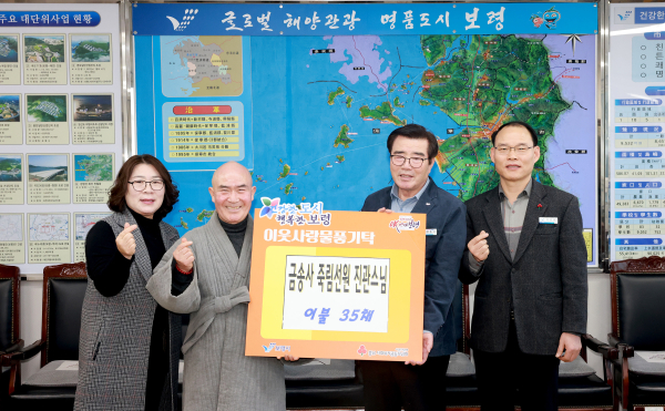같은 날 삽시도 금송사 죽림선원은 530만 원 상당의 겨울 이불 35채를 기탁했다. 이번 기부는 본격적인 한파가 시작되는 연말을 맞아 주거 환경이 열악하거나 추위에 취약한 저소득 가구의 따뜻한 잠자리를 지원하기 위해 마련됐다.