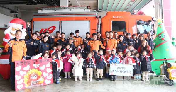이날 어린이집 원아들은 소방관들을 향한 감사의 마음을 담아 간식과 손편지를 준비해 방문했다. 아이들은 고사리손으로 하나씩 간식을 건네며 응원을 전했고, 소방관들은 아이들의 따뜻한 마음에 환한 웃음으로 답하며 뜻깊은 시간을 함께했다.