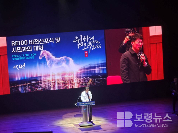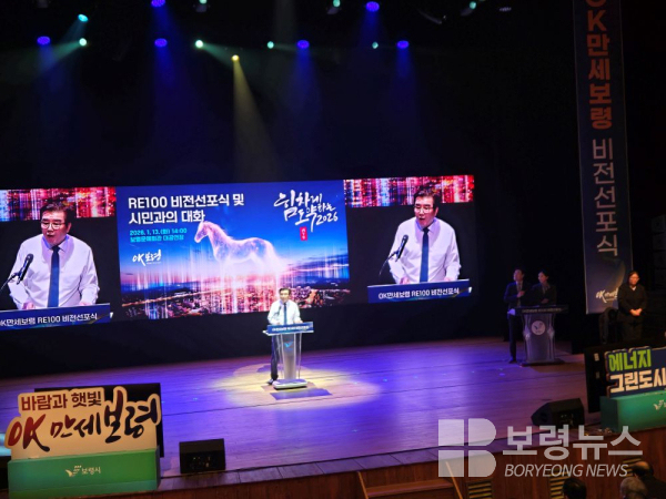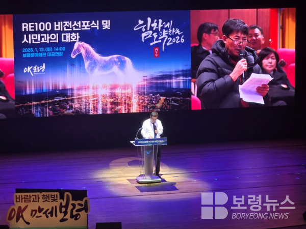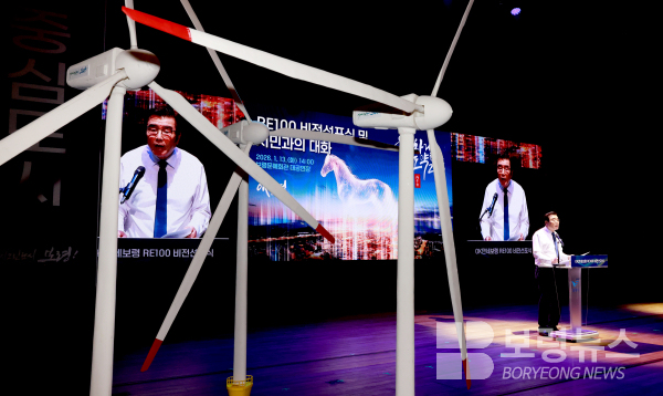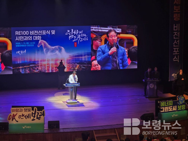 이날 행사는 2026년 시정현안보고, RE100 비전선포식, 병오년 시민과의 대화 순으로 진행됐다. 석탄화력발전소 폐쇄에 따른 지역경제 위기를 극복하고 에너지그린도시로 전환하는 OK만세보령 RE100 비전을 제시하는 자리였다.