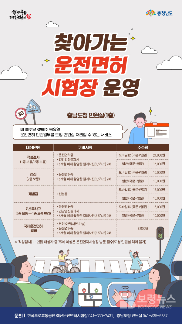 찾아가는 운전면허시험장은 도로교통공단 예산운전면허시험장과 협력해 운전면허 관련 민원 업무를 도청 민원실에서 직접 처리하는 서비스이다.