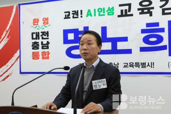 명 후보는 최근 발표한 기자회견문에서 "대전과 충남은 통합특별시라는 역사적 전환기를 맞이했다"며 "수도권 일극 체제를 넘어 수도권과 대등한 지방시대를 열기 위한 통합 논의가 활발히 진행되고 있지만, 정작 교육계는 이를 남의 일처럼 바라보고 있다"고 지적했다.
