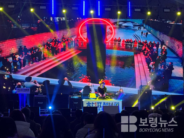 청양에서는 쉽게 접하기 어려운 DJ 중심 무대가 펼쳐지며, 관람객들은 음악에 맞춰 자연스럽게 몸을 흔들고 밤을 즐기는 모습이었다.