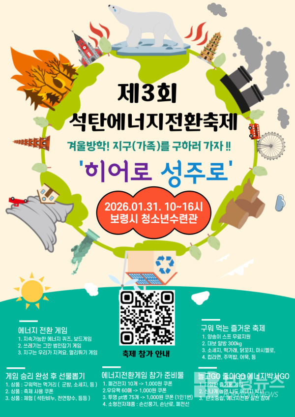 - 겨울방학 석탄 에너지전환 축제 히어로! 성주로!... 31일 보령시청소년수련원에서 열려