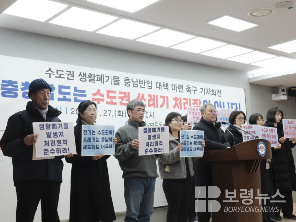 황성렬 충남환경운동연합 상임대표는 “전기는 수도권으로 보내고, 폐기물은 지방에서 처리되는 것은 수도권 집중과 지방소멸을 부추기는 정책”이라며 “지금이라도 정부는 생활폐기물의 민간위탁처리과 비수도권 유입에 대한 대책을 수립하고 시행하라”고 촉구했다.