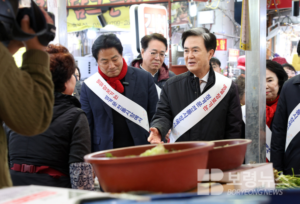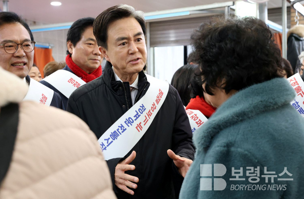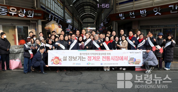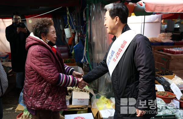 설 명절을 앞두고 김태흠 충남도지사가 전통시장을 찾아 상인들과 소통하며 현장의 목소리를 청취했다.