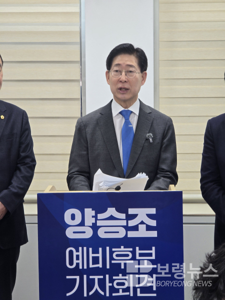 양승조 예비후보(전 충남도지사)가 20일 오전 대전시의회에서 긴급 기자회견을 열고 "대전의 과학기술이라는 두뇌와 충남의 산업·농생명이라는 근육이 하나의 몸으로 움직여야 한다”"며 통합 후 대전 발전 비전과 실행 의지를 밝혔다.