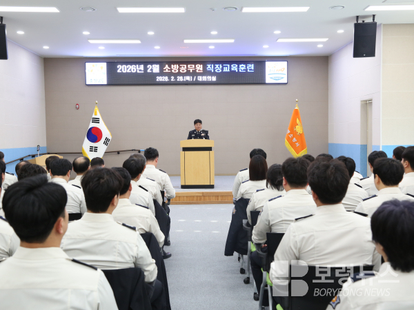 보령소방서(서장 고광종)는 26일 본서 3층 대회의실에서 내근 및 교대제 근무자 80여 명이 참석한 가운데 2026년 2월 직장교육훈련을 실시했다고 밝혔다.
